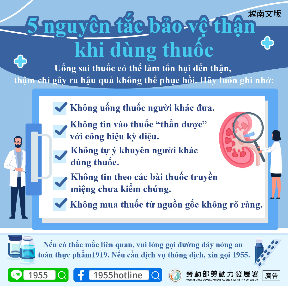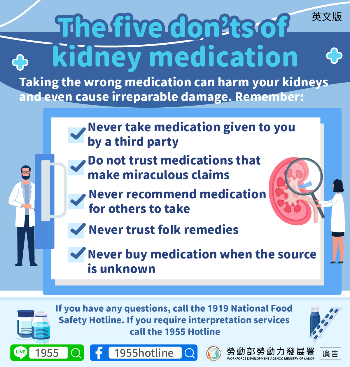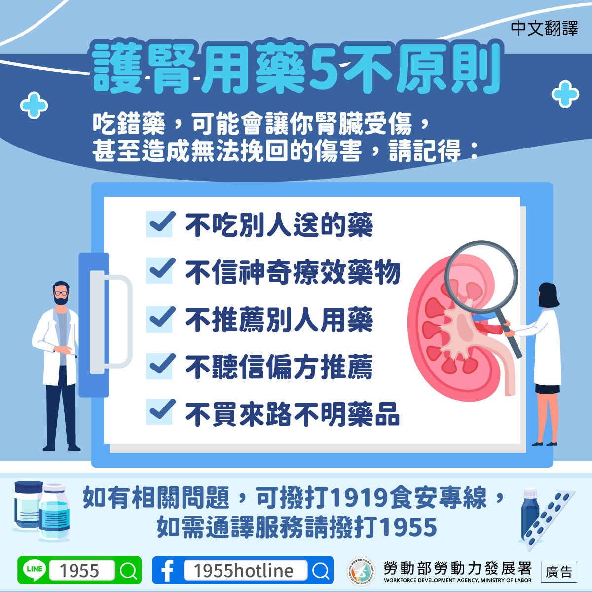 【護腎用藥5不原則】-多國語言版 2025/10/23 News ▍護腎用藥5不原則吃錯藥,可能會讓你腎臟受傷,甚至造成無法挽回的傷害,請記得:•不吃別人送的藥•不信神奇療效藥物•不推薦別人用藥•不聽信偏方推薦•不買來路不明藥品